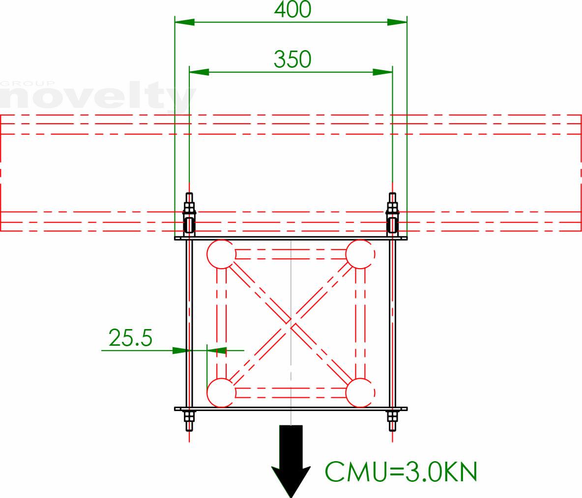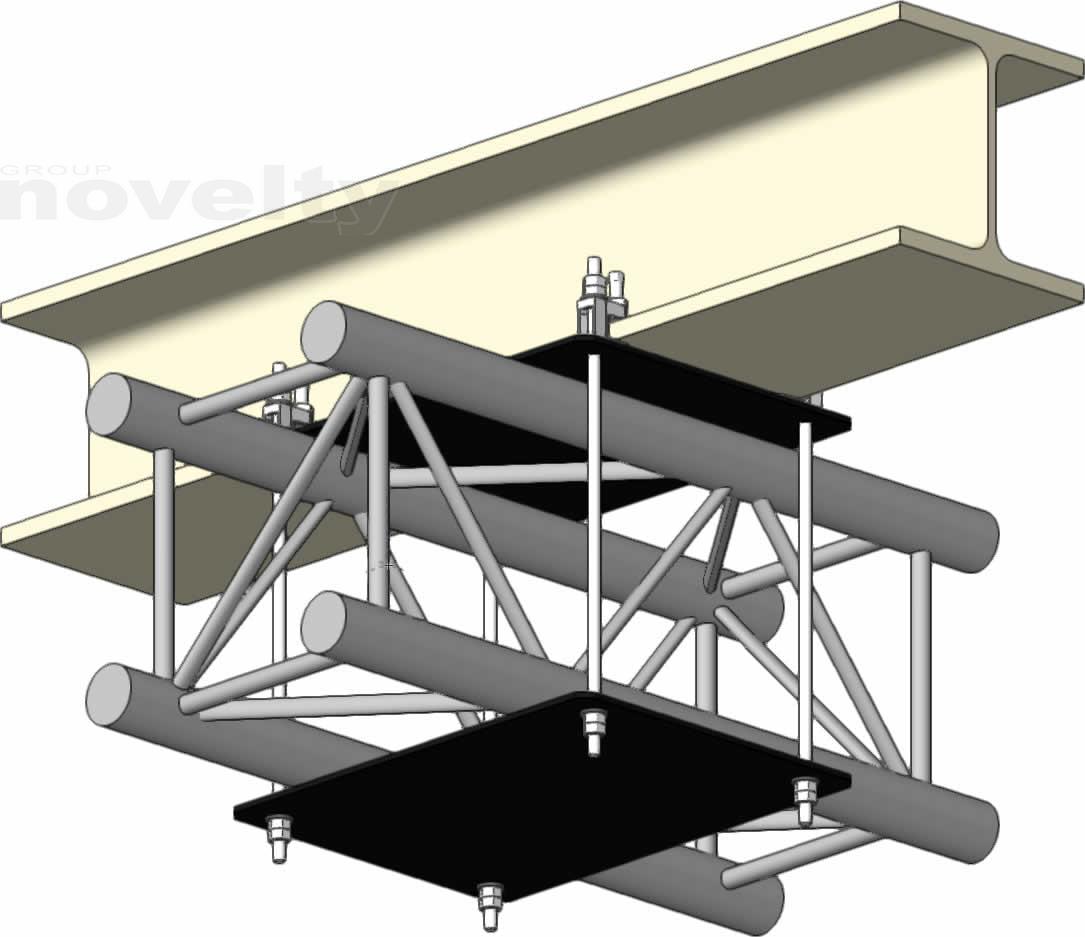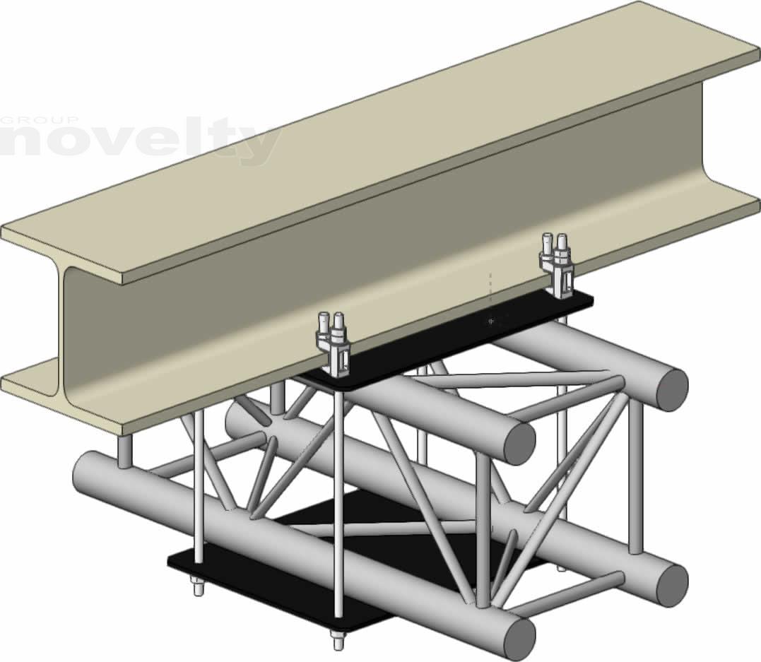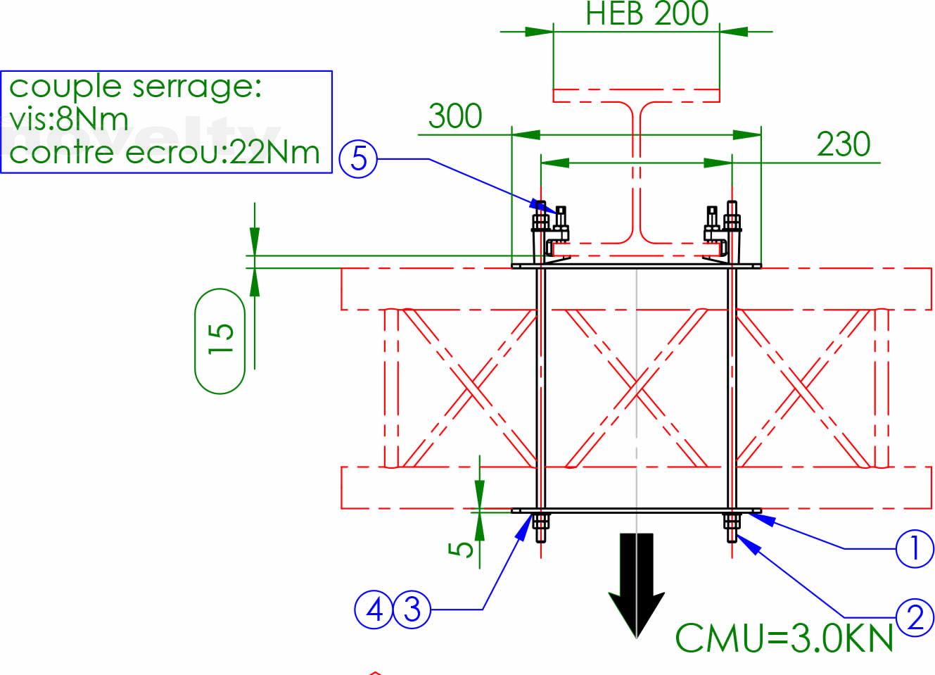 Ensemble d'accroche double pour série 300 carré sur poutre IPN type HEB200, CMU 300kg