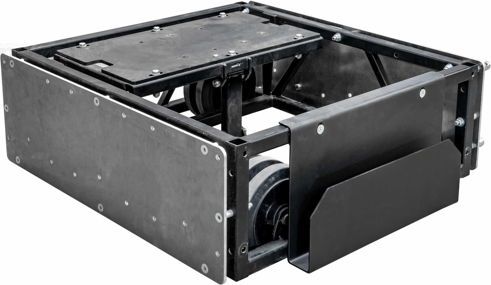 - NOVELTY Dolly 100x100 MasterChariot motorisé pour déplacement de scène, mur vidéo, scénographie, ... charge maximale 1t par chariot, assemblage possible par poutre 300 carrée