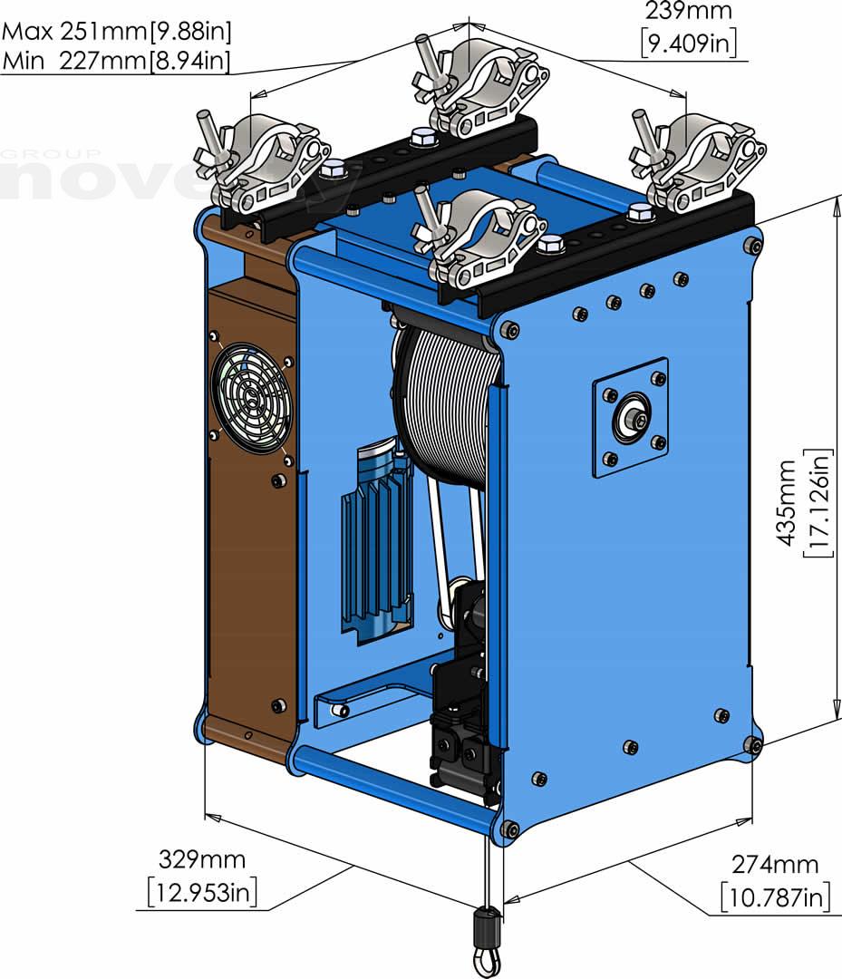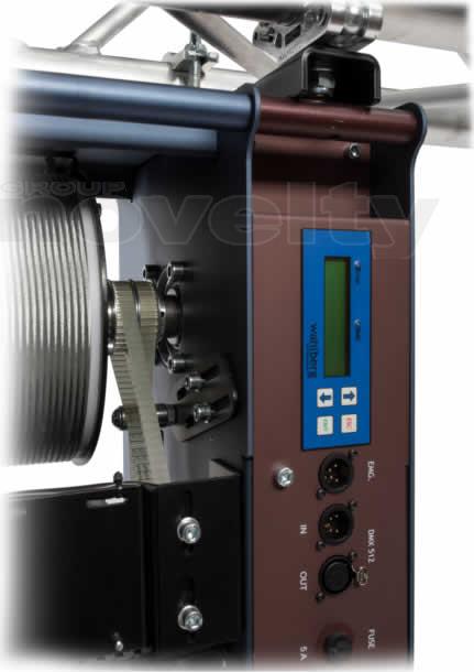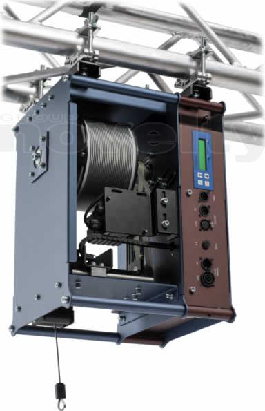 The winch has an advanced positioning system controlled from a 16 bit DMX channel and is highly accurate;
