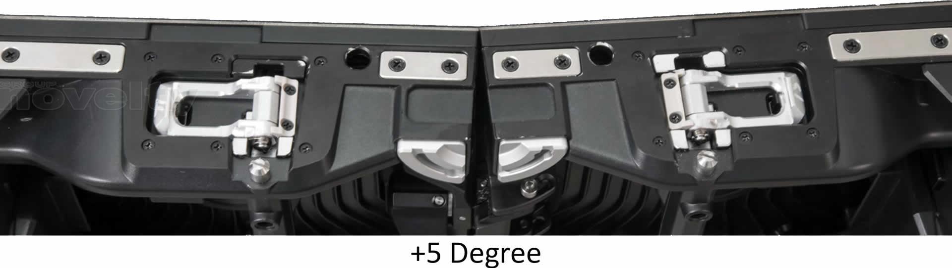 Supports both concave (inner) and convex (outer) curve screens for ultimate design fexibility. Unique locking system makes it simple to switch between flat or curved designs. Advanced locking system ensures curves are seamless without dark and light lines. Three-angle adjustment on the side locking system? Flat (0 º), concave (+5º), convex (-5 º).